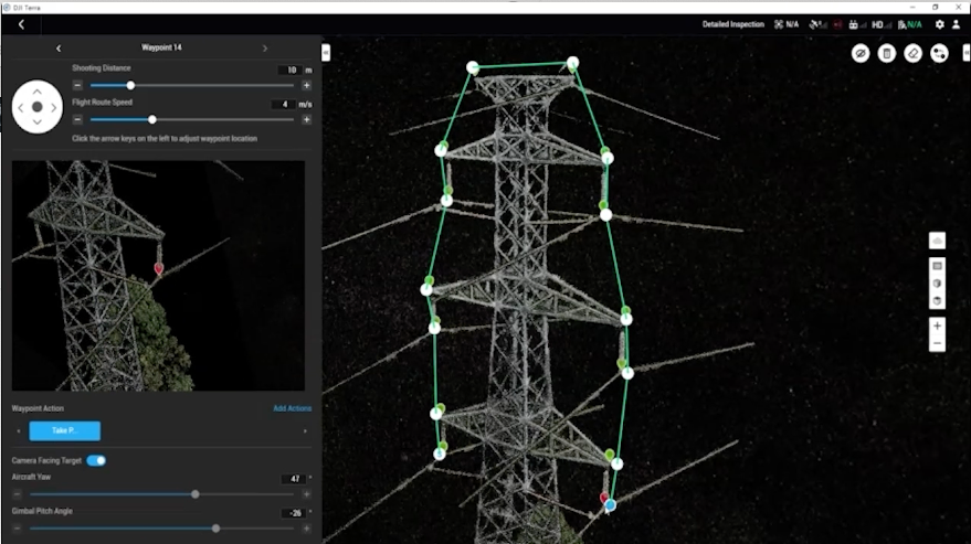 Efficiently plan flight paths with preset actions and adjustable parameters like altitude, speed, and gimbal angle.